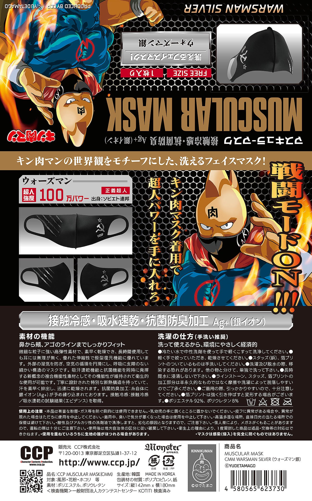■洗えるキン肉マン1/1フェイスマスク■接触冷感・吸水速乾・抗菌防臭加工。